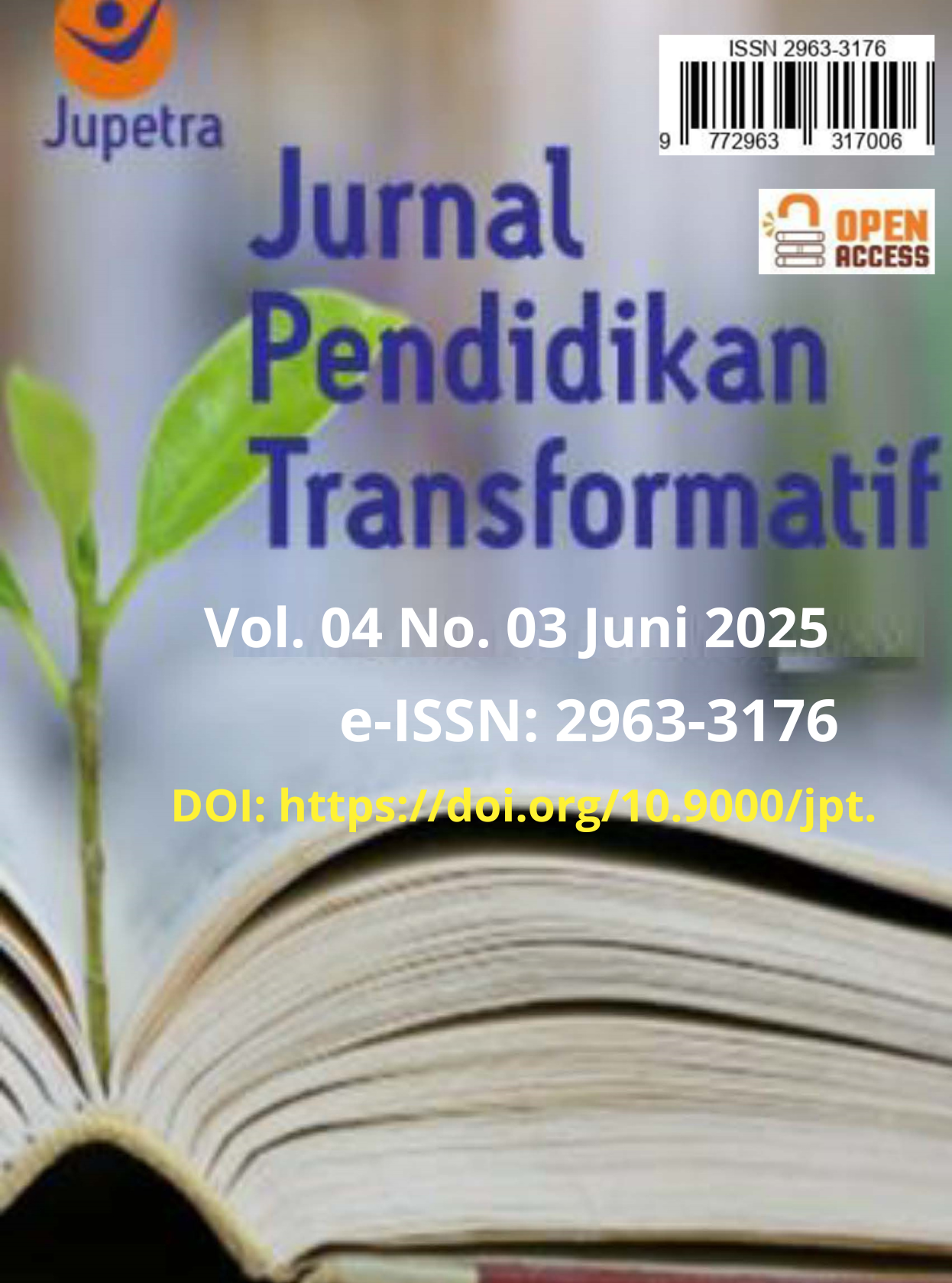 Jupetra- Jurnal Pendidikan Transformatif (e-ISSN: 2963-3176) adalah Jurnal open-access, yang berarti bahwa pengunjung di seluruh dunia dapat membaca, mengunduh, mengutip, dan mendistribusikan makalah yang diterbitkan dalam jurnal ini. Kami mengadopsi model peer-review, yang menjamin penerbitan cepat dan pengiriman yang mudah. Kami sekarang dengan hormat mengundang Anda untuk berkontribusi atau merekomendasikan makalah berkualitas kepada kami. Tesis, disertasi, makalah penelitian, dan ulasan semuanya dapat diterima untuk dipublikasikan.